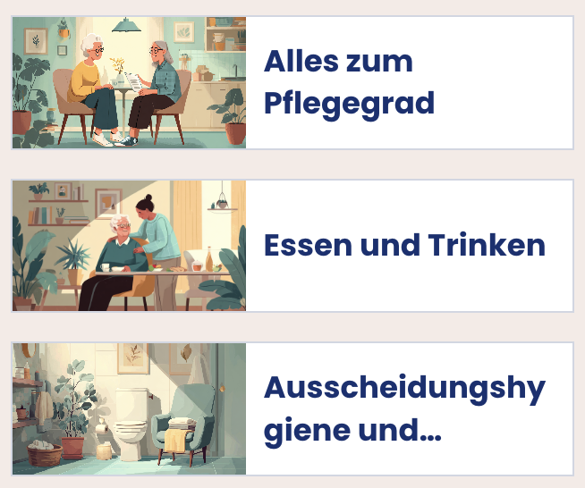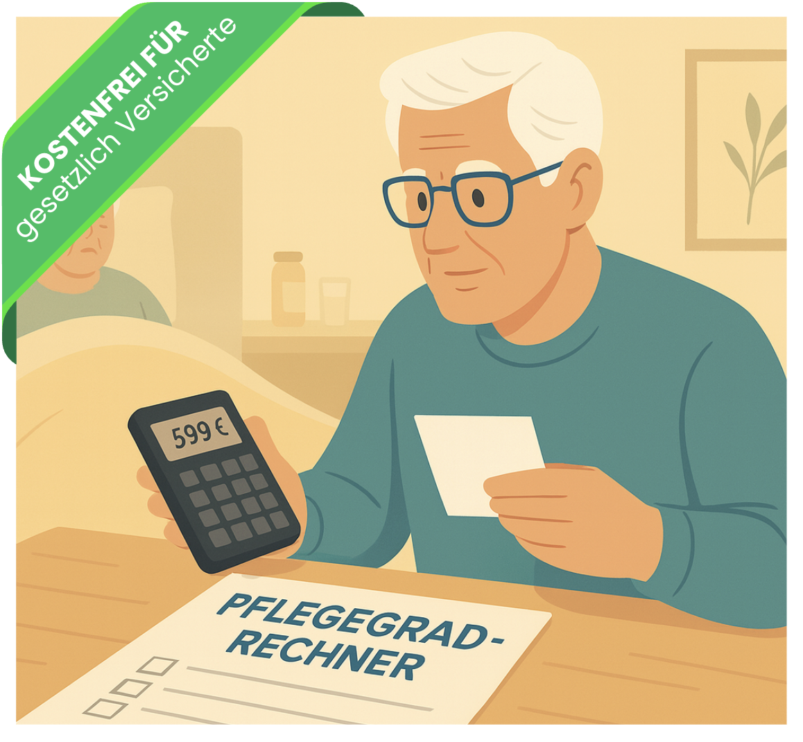 Der Pflegegradrechner ist ein von uns zusätzlich eingerichteter Service, der den Kurs optimal ergänzt: Er zeigt Ihnen sofort, welcher Pflegegrad infrage kommt und welche Leistungen möglich sind. So haben Sie Orientierung vor dem Kurs und praktische Unterstützung während und nach dem Kurs.
